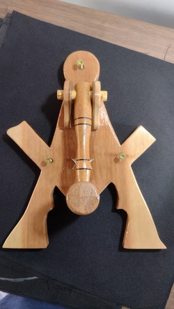 Peça em madeira fixada na porta do Átrio para usar como batedor,