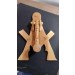 Em madeira resistente para ser fixado na porta.